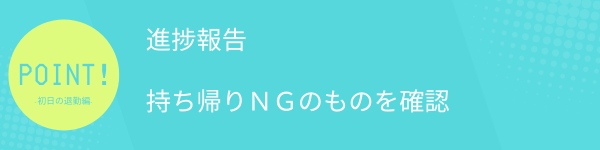 貸与物や配布物について、帰宅する際は持ち帰って問題ないものか確認をしてから持ち出しをするようにしましょう。持ち出しに申請が必要な場合や、そもそも持ち出し禁止の書類などあるかもしれません。初日からルール違反にならないように、確認すると安心です。